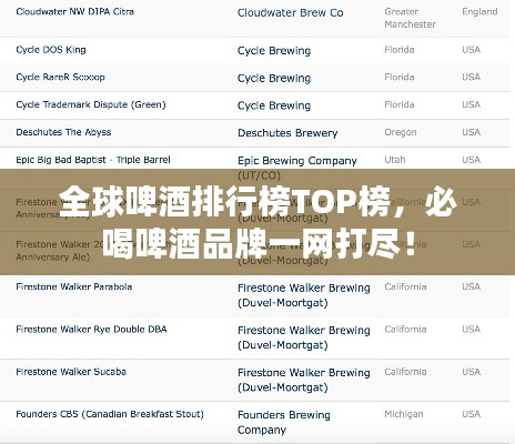 啤酒,作为世界上最古老的酒精饮料之一,因地域、文化、气候和酿造工艺的差异,形成了各式各样的风味和口感,以下是全世界范围内知名度较高、深受消费者喜爱的啤酒排名。