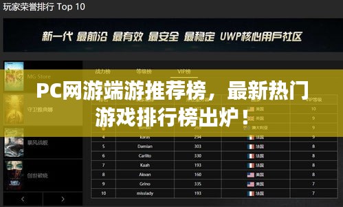 随着科技的不断发展,电脑游戏已经成为了人们休闲娱乐的重要方式之一,本文将为大家介绍最新PC网游端游推荐排行榜,带你领略当今最热门的游戏世界。