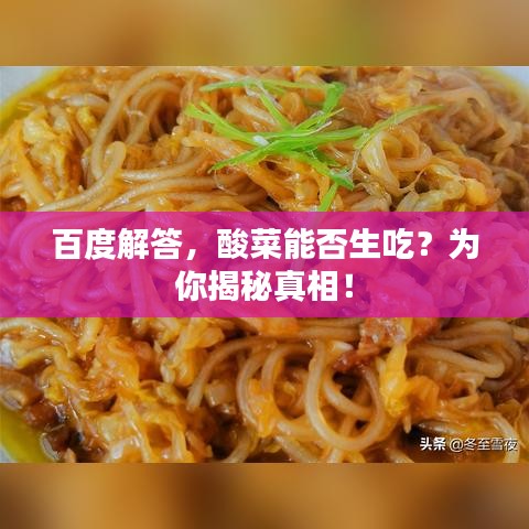 在日常饮食中,酸菜因其独特的口感和风味,受到了广大食客的喜爱,很多人对酸菜的食用方式存在疑问,尤其是是否可以生吃酸菜,就让我们一起通过百度搜索,探寻关于酸菜生吃的一些真相。