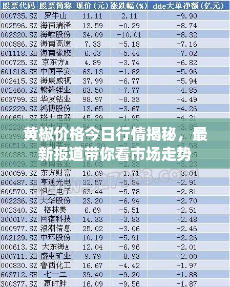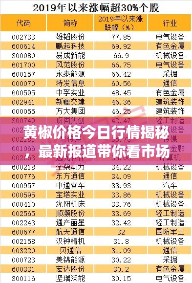 随着人们消费水平的提高,各种食材的价格成为公众关注的焦点,黄椒作为一种常见的调料,其价格动态也备受关注,本文将为您详细介绍黄椒今日的价格行情及最新动态。