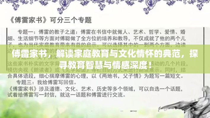 从古至今,家书承载着家庭的情感交流、教育传承与文化熏陶,傅雷家书,作为其中的典范之作,以其深厚的文化底蕴和真挚的情感交流,成为了人们研究和学习的专题,本文将从多个角度解读傅雷家书,探寻其中蕴含的家庭教育、文化情怀及其深远影响。