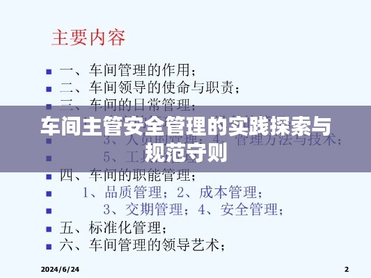 随着工业生产的快速发展,车间安全管理已成为企业运营中的重要环节,作为车间主管,肩负着安全规范管理的重任,必须确保车间的安全生产,保障员工的生命财产安全,本文将探讨车间主管如何进行安全规范管理,以提高企业的生产效率和管理水平。