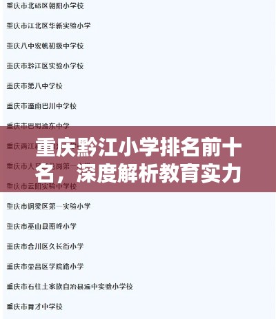 重庆黔江地区的教育事业蓬勃发展,其中小学阶段的教育成果尤为突出,本文将为您介绍重庆黔江小学排名前十名,探究其教育实力及特色。