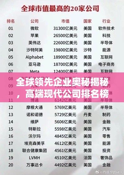 全球领先企业奥秘揭秘,高端现代公司排名榜单