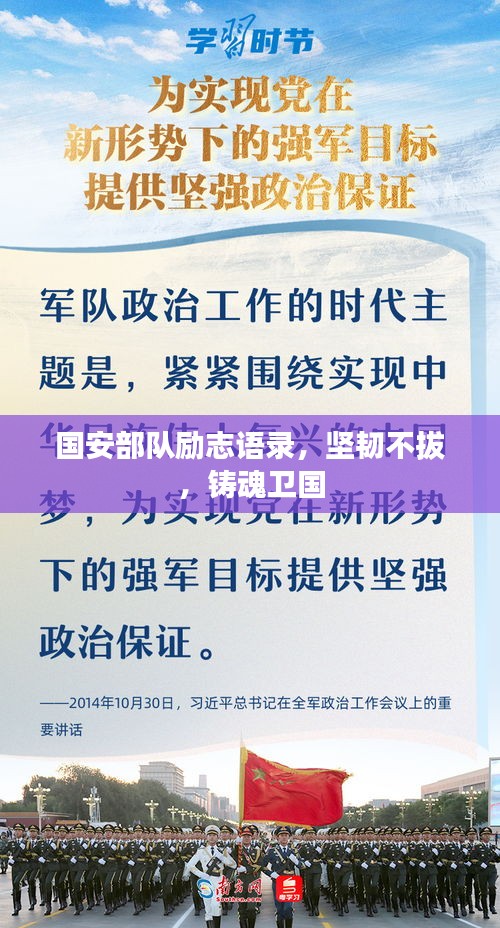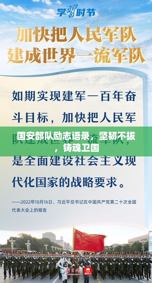 在浩渺的历史长河中,国安部队始终如一坚实的脊梁,承载着国家的安宁与人民的希望,这支英勇无畏的队伍,承载着无数的荣耀与使命,他们的信念、毅力与奋斗,成为了激励我们前行的力量,本文将以国安部队励志语录为主题,探讨坚韧不拔的精神,为国家的繁荣与强盛铸就灵魂。