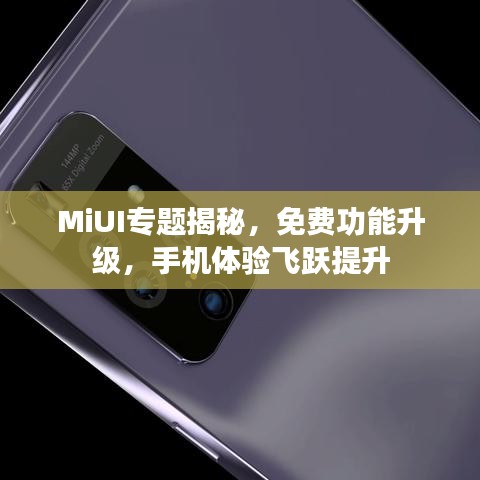 随着科技的飞速发展,智能手机已经成为我们日常生活中不可或缺的一部分,而在众多手机操作系统中,MiUI凭借其强大的功能和优秀的用户体验脱颖而出,本文将带你一起探索MiUI的专题——免费功能,让你的手机体验更上一层楼。
