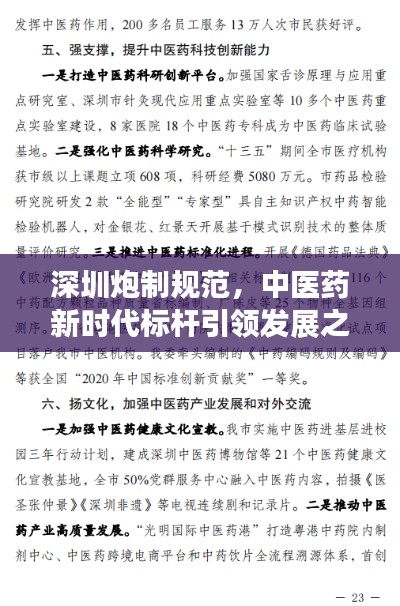 随着国家对中医药事业的重视与支持,中医药发展迎来了前所未有的机遇,深圳市作为改革开放的前沿阵地,在中医药领域也积极探索创新,深圳炮制规范”的出台,更是为中医药发展树立了新的标杆。