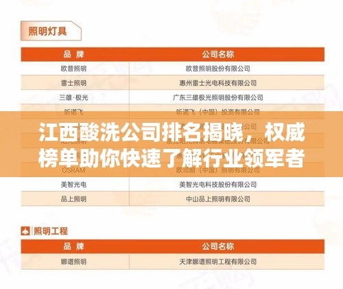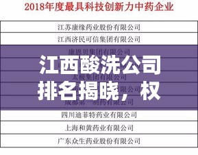 随着工业领域的不断发展,酸洗行业也逐渐崭露头角,在众多的酸洗公司中,江西地区的酸洗公司备受瞩目,本文将介绍江西地区的酸洗公司排名,以便为需要选择酸洗服务的企业提供参考。