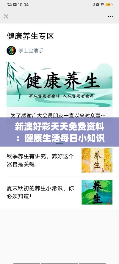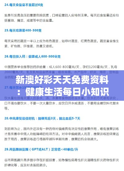 新澳好彩天天免费资料:健康生活每日小知识