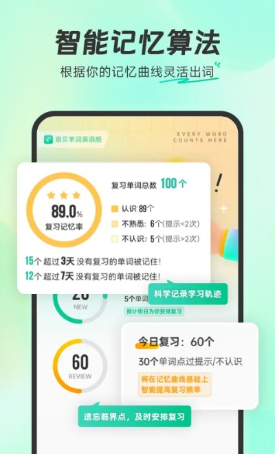 2、强大的学习能力:通过智能算法和个性化学习方案,扇贝单词能够帮助用户快速掌握英语词汇,提升语言应用能力。