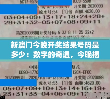新澳门今晚开奖结果号码是多少:数字的奇遇,今晚揭晓