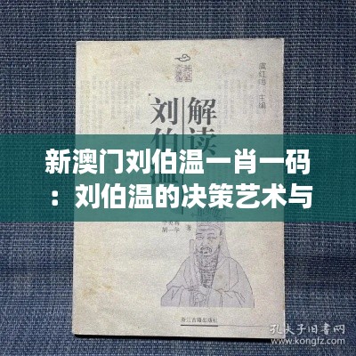 《新澳门刘伯温一肖一码:刘伯温的决策艺术与领导力》是一部深入探讨历史人物刘伯温的政治智慧与领导才能的文献资料。本文将系统介绍该文献的主要内容,旨在为读者提供一个全面的视角,理解刘伯温如何运用其决策艺术以及领导力在其时代背景下发挥重要影响。在介绍中,我们将遵循客观准确的原则,避免涉及赌博或彩票等不相关内容。