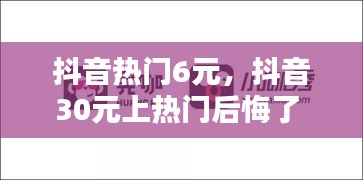 抖音热门6元,抖音30元上热门后悔了