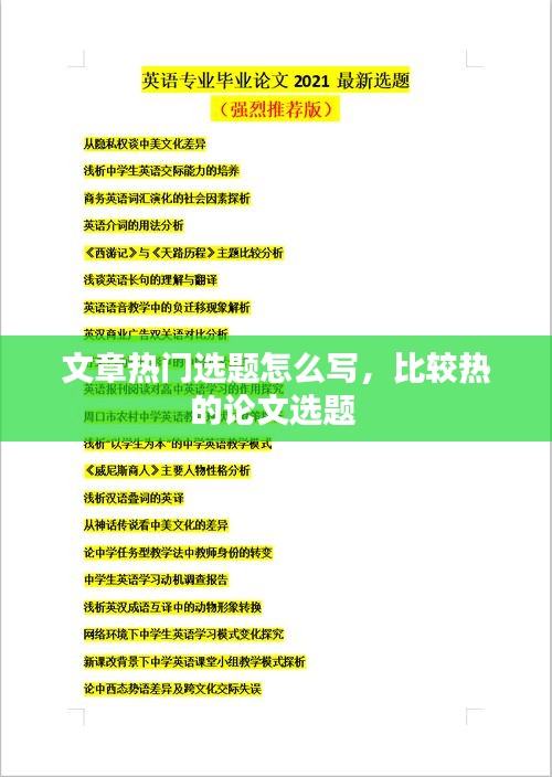 文章热门选题怎么写,比较热的论文选题