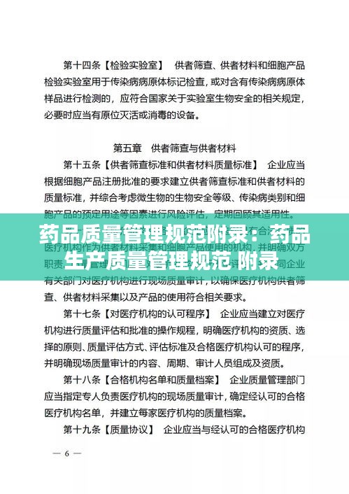 药品质量管理规范(GMP)是一套旨在确保药品生产、质量控制、储存和分发过程中符合质量要求的标准。GMP附录是GMP规范的一部分,它详细规定了药品生产过程中的具体操作规程和技术要求。附录的内容涵盖了从原料采购到成品销售的各个环节,旨在确保药品的安全、有效和合规。