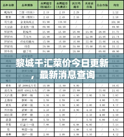 随着生活水平的提高,人们对食品的需求日益增加,而菜价作为直接关系到民众日常生活费用的重要指标,一直备受关注,本文将围绕“黎城千汇菜价查询今天最新消息”这一主题展开,为广大市民提供最新的菜价信息,同时探讨菜价背后的市场动态和影响因素。