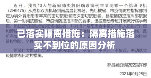 已落实隔离措施:隔离措施落实不到位的原因分析