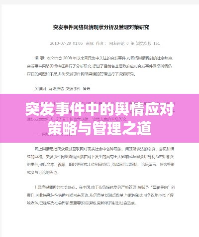 随着信息技术的飞速发展,社交媒体和互联网的普及使得信息传播速度空前加快,在这样的时代背景下,突发事件中的舆情应对与管理成为了一个重要的议题,本文将探讨突发事件中的舆情,分析其原因、影响,并提出应对策略。