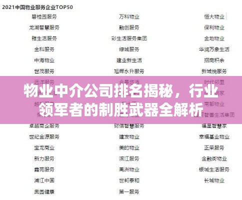 物业中介公司排名揭秘,行业领军者的制胜武器全解析