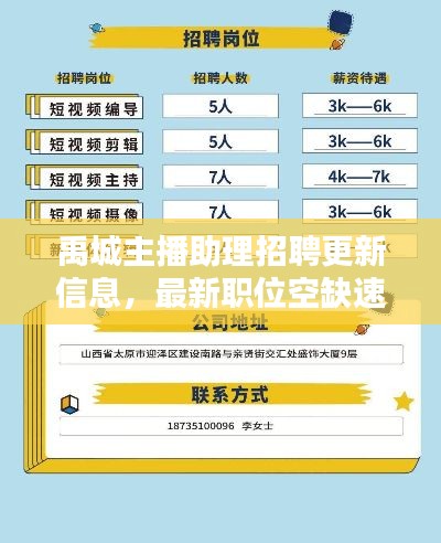 禹城主播助理招聘更新信息,最新职位空缺速递