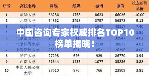 五至十名分别为:XX顾问、XX咨询师、XX教授级高工、XX博士等,他们在各自的领域都有着卓越的成就和深厚的专业知识,为中国的咨询行业做出了重要贡献,这些咨询专家不仅在学术研究上有着较高的成就,而且在实践应用中也有着丰富的经验,他们为众多企业提供了专业的咨询服务,帮助企业解决了一系列难题。