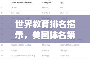 全球教育排名是一个反映各国教育水平、质量和影响力的指标系统,这些排名通常基于一系列标准,包括教育资源、教育质量、研究产出、教育公平等多个方面,在这些排名中,美国的教育表现一直备受关注。