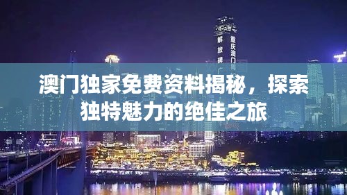 澳门,这座充满魅力的城市,一直以来都是人们心中的旅游胜地,我们将通过“澳门独家免费资料”来一起探索澳门的独特魅力。