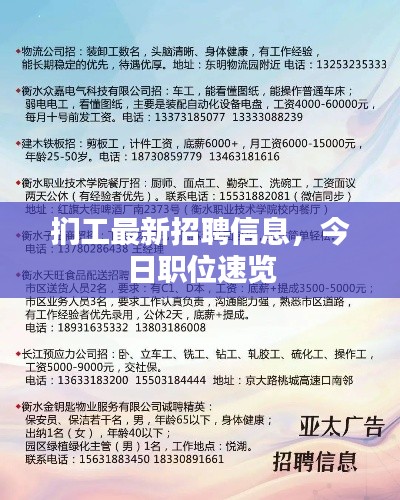 随着制造业的快速发展,扪工这一职业逐渐受到广泛关注,为了满足企业对人才的需求,本文将为大家提供最新的扪工招聘信息,希望通过这篇文章,能够帮助求职者找到合适的工作机会,同时也为企业解决人才招聘的问题。