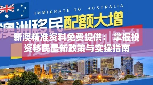 本文旨在为有意向进行新澳投资移民的人士提供一个全新的精准资料免费提供平台,帮助读者全面掌握投资移民的最新政策与实操指南。通过深入浅出的分析和详细的步骤讲解,让读者在投资移民的道路上少走弯路,顺利完成身份的转变。