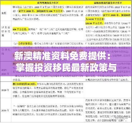 新澳精准资料免费提供: 掌握投资移民最新政策与实操指南
