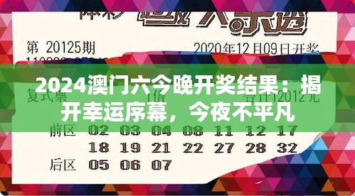 2024澳门六今晚开奖结果:揭开幸运序幕,今夜不平凡