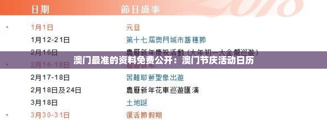 澳门最准的资料免费公开:澳门节庆活动日历