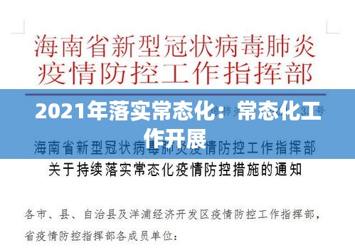 2021年,全球正面临着新冠疫情的严峻挑战,各国政府和社会各界都在积极应对这一前所未有的公共卫生危机。在这样的背景下,落实常态化成为了一种必要的选择。常态化意味着将疫情防控措施融入日常生活的方方面面,形成一种新的生活方式和社会秩序,以适应长期与病毒共存的新常态。
